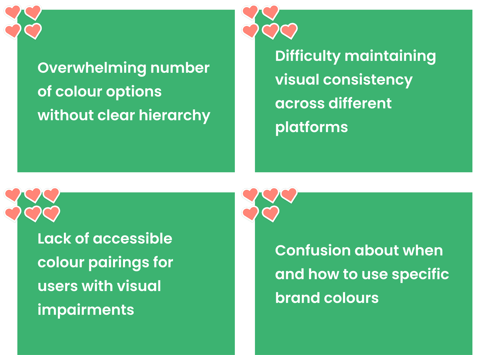"How might we create a colour system that scales with our growing product portfolio while maintaining accessibility and brand integrity?"