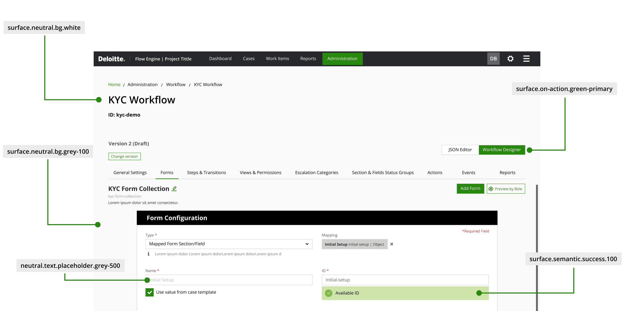 Our diverse portfolio of applications suffered from inconsistent colour usage, accessibility issues, and a little disconnect from Deloitte's brand identity.