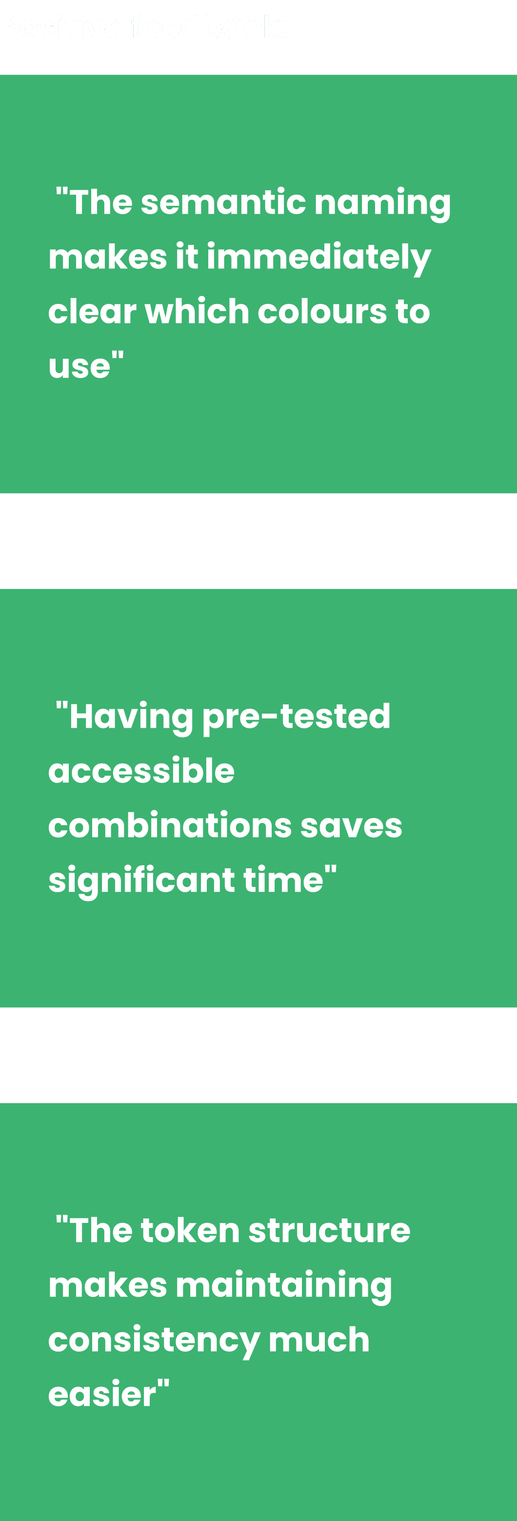 The redesigned colour system established a scalable, accessible foundation that reduced design decision fatigue by 70%, improved WCAG compliance across all platforms, and created a unified visual language that strengthened brand consistency while empowering teams to build faster and more cohesively.
