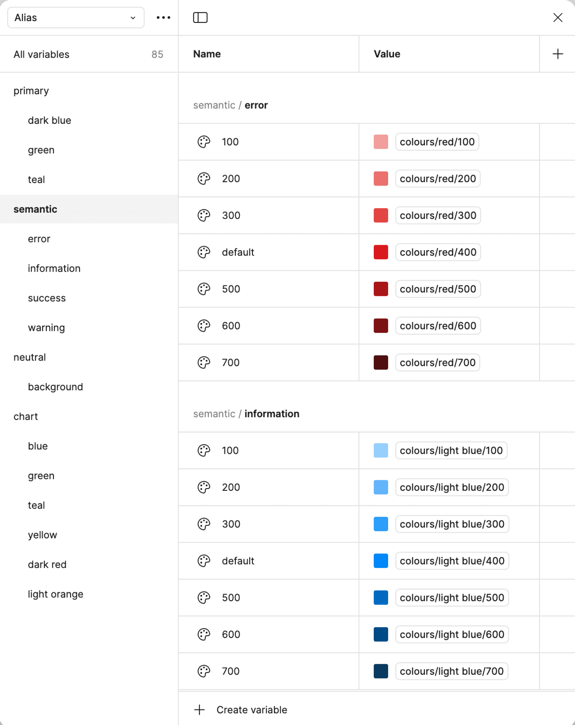 The biggest breakthrough was establishing a rule of 100 that redefined colours with clear semantic roles. Expanding the spectrum of existing colours provided flexibility when choosing and forming colour groups, and instead of arbitrary names, each colour now served a specific purpose: