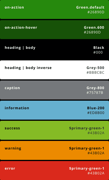 Secondary Colours: Alert colours. Success, warning, error, and information states