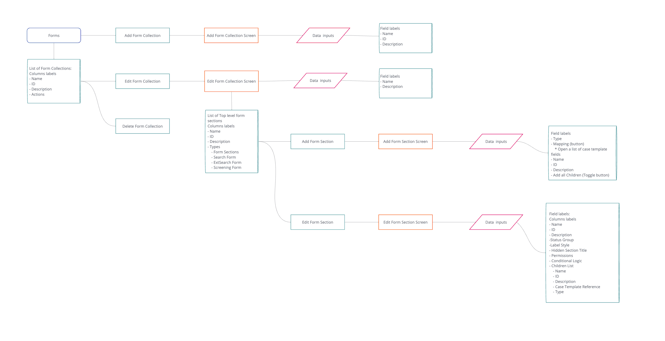 The main goal of this interface was to provide users with a simple and easy method to add children's sections or fields while ensuring that they understand their relationships. The interface must be logical and intuitive, aligning with how users naturally structure information.